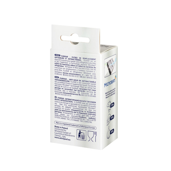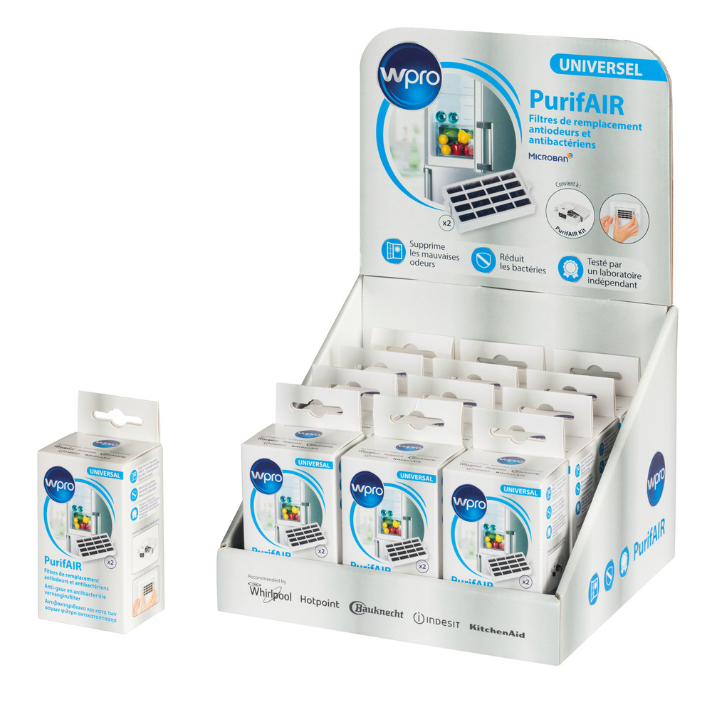 Kit de remplacement avec 2 filtres à air antibactériens Microban à insérer dans le PurifAIR porte-filtre. Élimine les odeurs désagréables et garde votre réfrigérateur plus frais et plus hygiénique. Le filtre doit être changé tous les 6 mois.