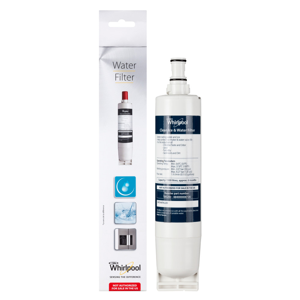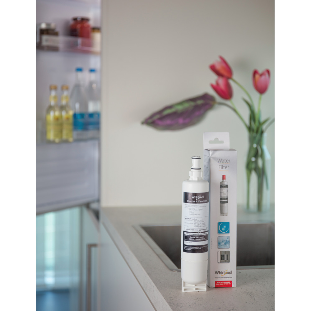 Waterfilter voor Whirlpool Side-by-Side Amerikaanse koelkasten. De waterfilter filtert nagenoeg alle onzuiverheden als metalen, roest, zand en ander vuil en geeft water en ijsblokjes een zuivere en pure smaak.